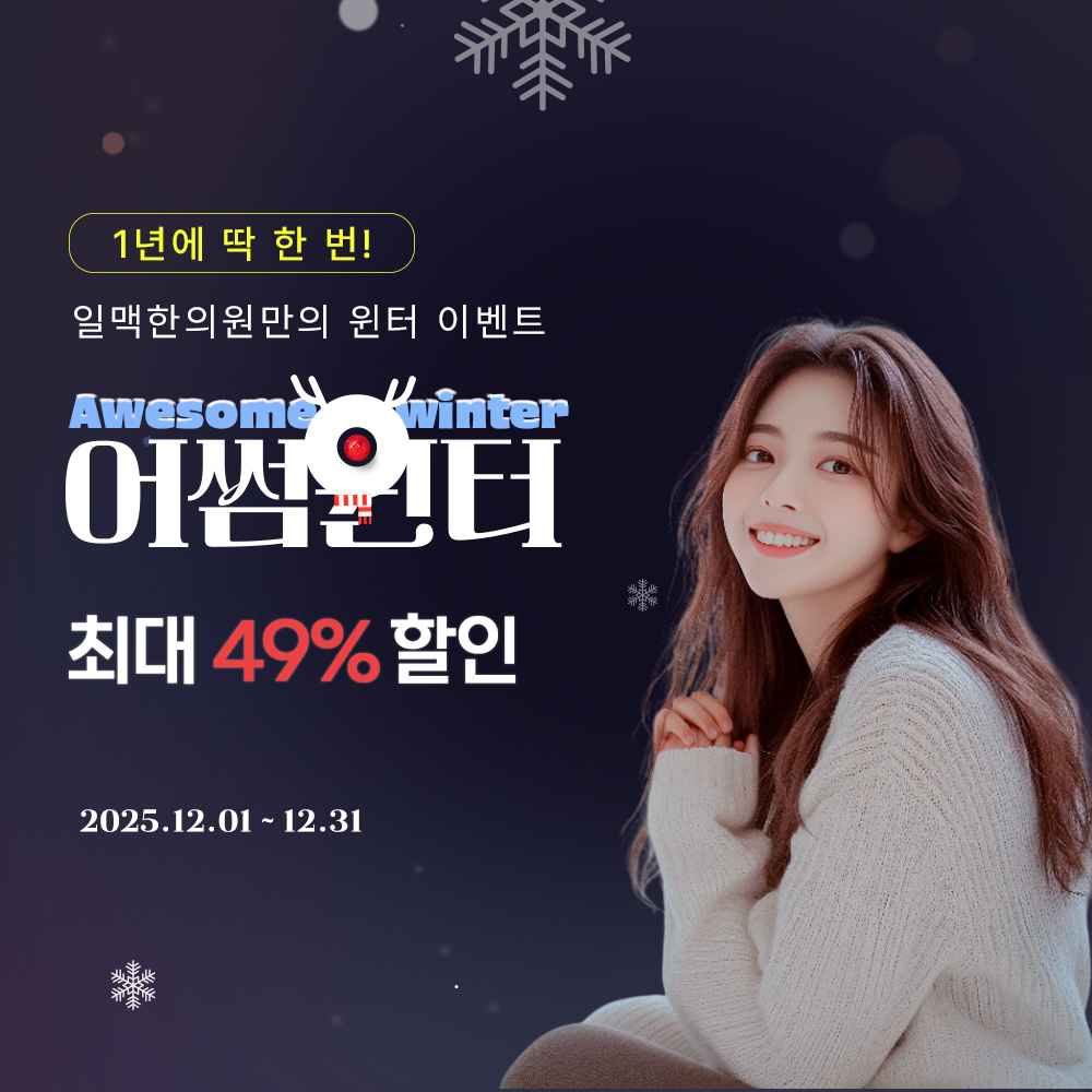 윈터 이벤트 2025.12.01 ~ 2025.12.31 체감환 플러스 2025.12.01 ~ 2025.12.31 다이어트 시술 2025.12.01 ~ 2025.12.31 수험생 단독 이벤트 2025.11.13 ~ 2025.12.31 쉽게 몸매를 소환해 2025.12.01 ~ 2025.12.31 지방소탕 2025.12.01 ~ 2025.12.31